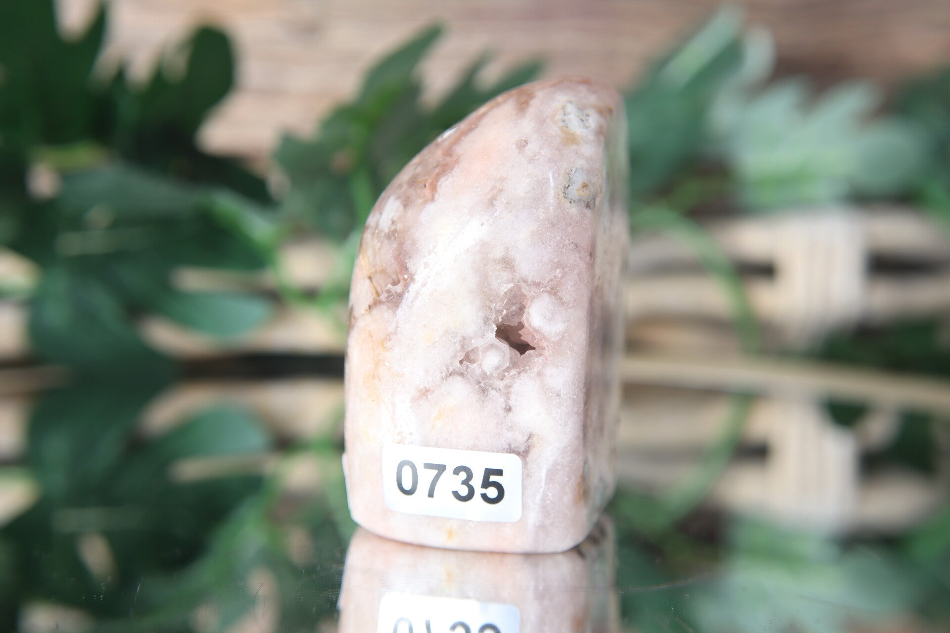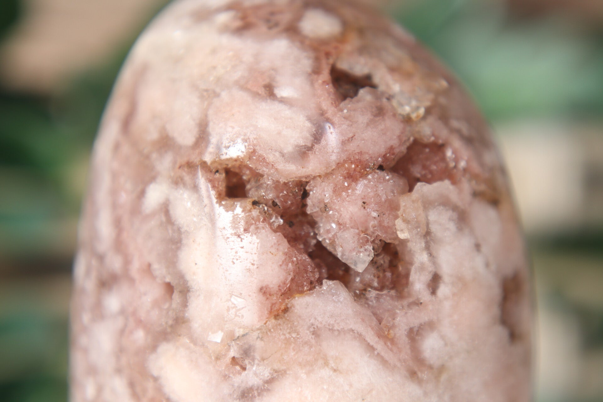 Roze amethist staat bekend om haar liefdevolle en kalmerende energie. Ze bevordert innerlijke rust, zelfliefde en emotionele balans, waardoor ze een serene sfeer in elke ruimte brengt.